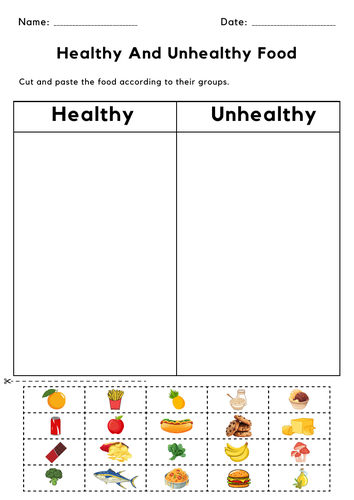 healthy and unhealthy food cut and paste worksheet Teaching Resources