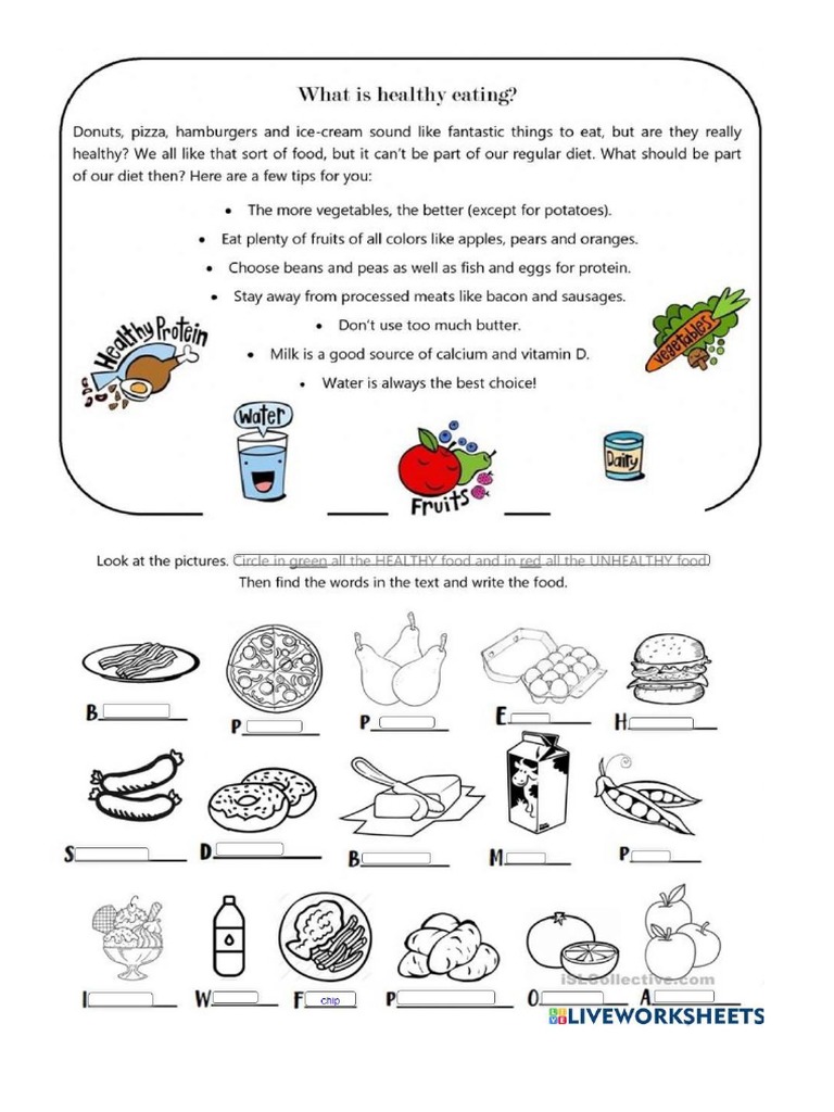 healthy and unhealthy food worksheet Healthy and unhealthy food