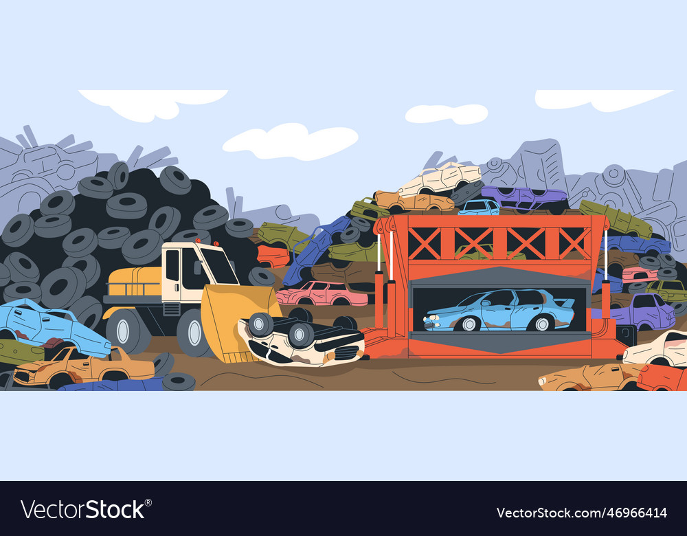 Car junkyard with old used autos dump heap junk Vector Image