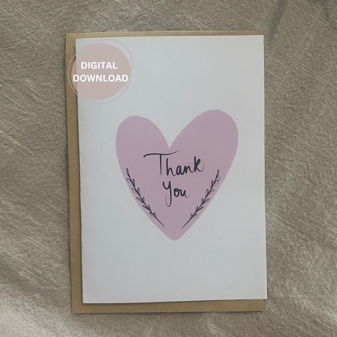 Thank You Card Thank You Card Printable With a Heart Digital Etsy