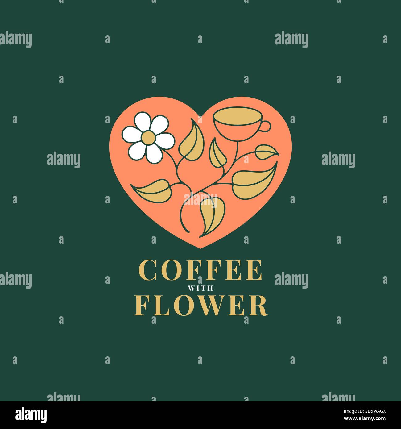 Coffee with Flower Abstract Vector Trendy Sign Symbol or Linear Logo