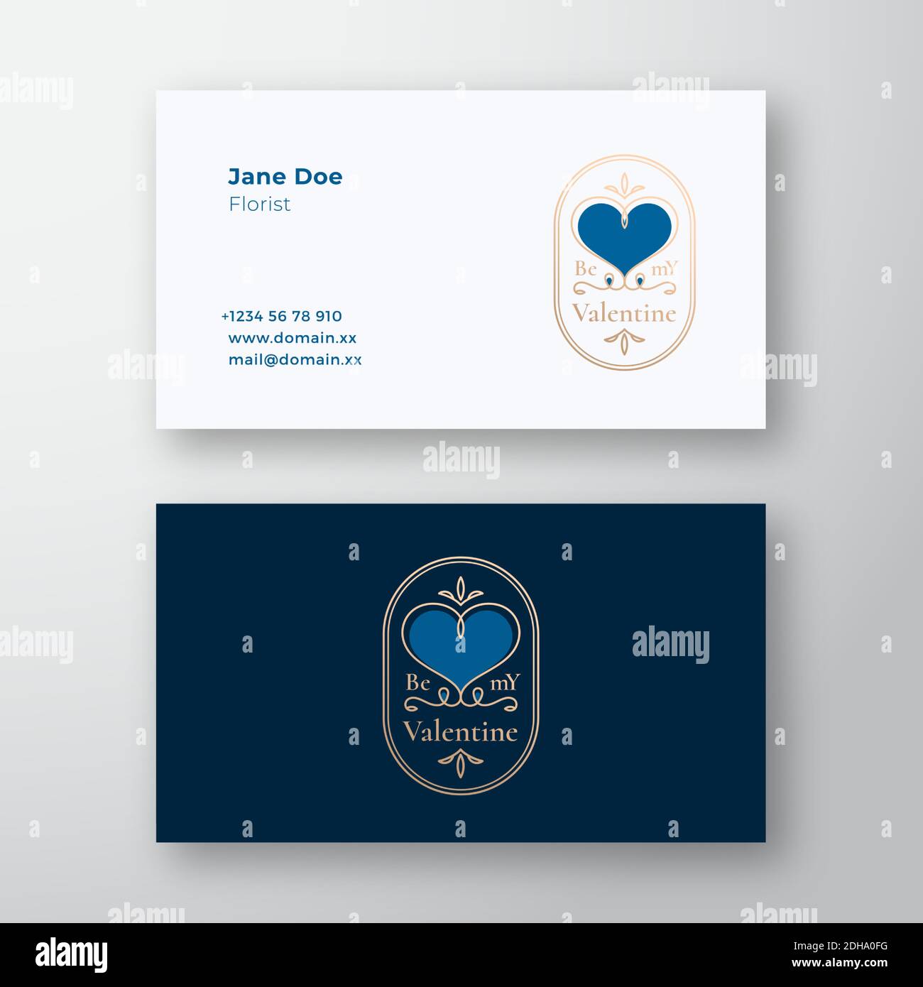 Be My Valentine Abstract Curly Heart Frame Label and Business Card