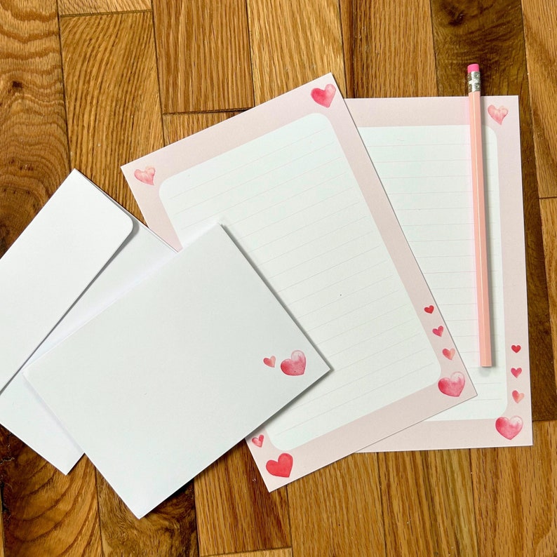 Pink Heart Stationery Set Letter Writing Paper Envelopes Included Etsy
