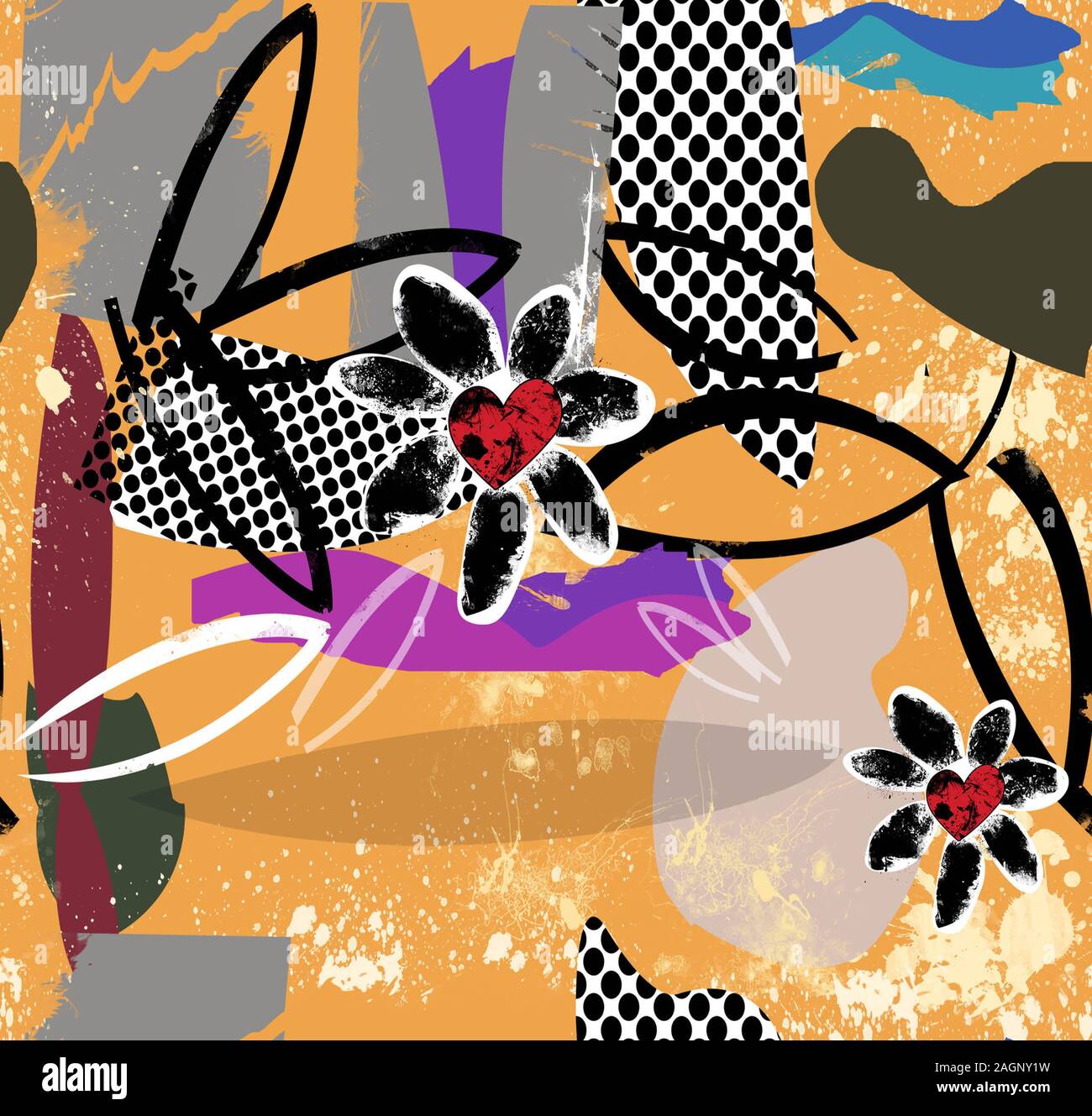 Seamless multicolor fashion pattern Abstract shapes background Hearts