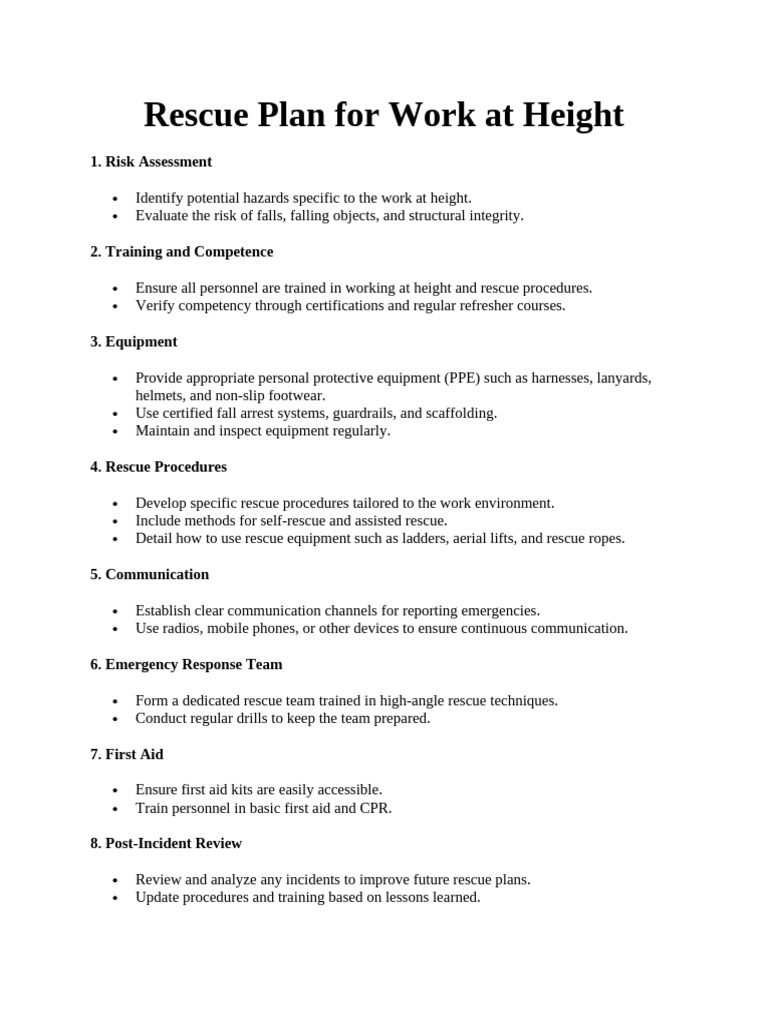 Rescue Plan for Work at Height and Hot Work Plan PDF First Aid