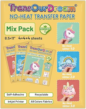 Amazon com: TransOurDream Heat No Heat Transfer Paper Glitter 1 0 for