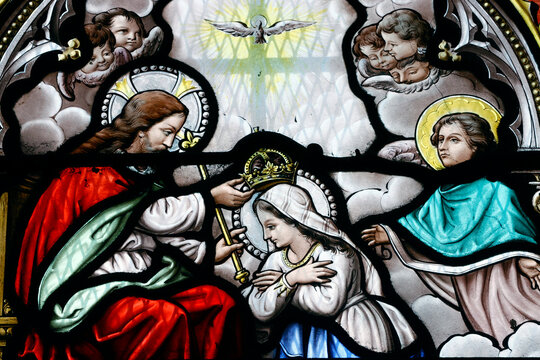 Saint Leonard church Stained glass The Coronation of the Virgin in