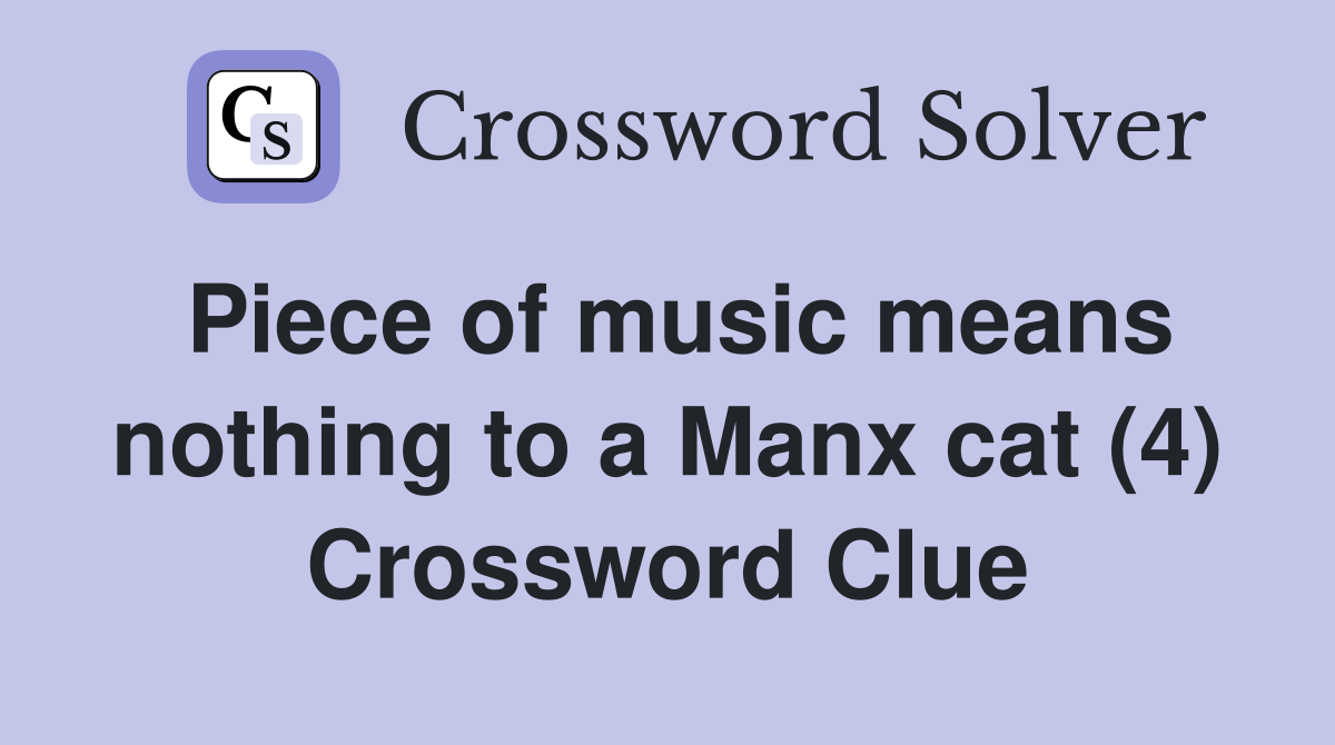 Piece of music means nothing to a Manx cat (4) Crossword Clue Answers