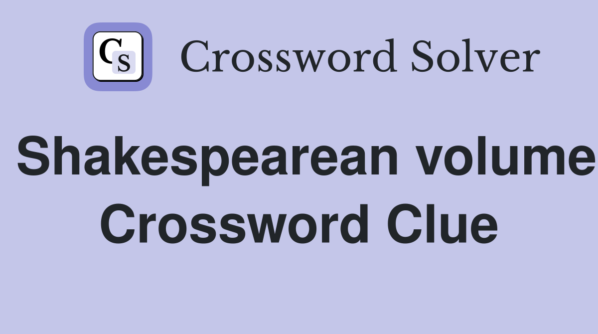 Shakespearean volume Crossword Clue Answers Crossword Solver