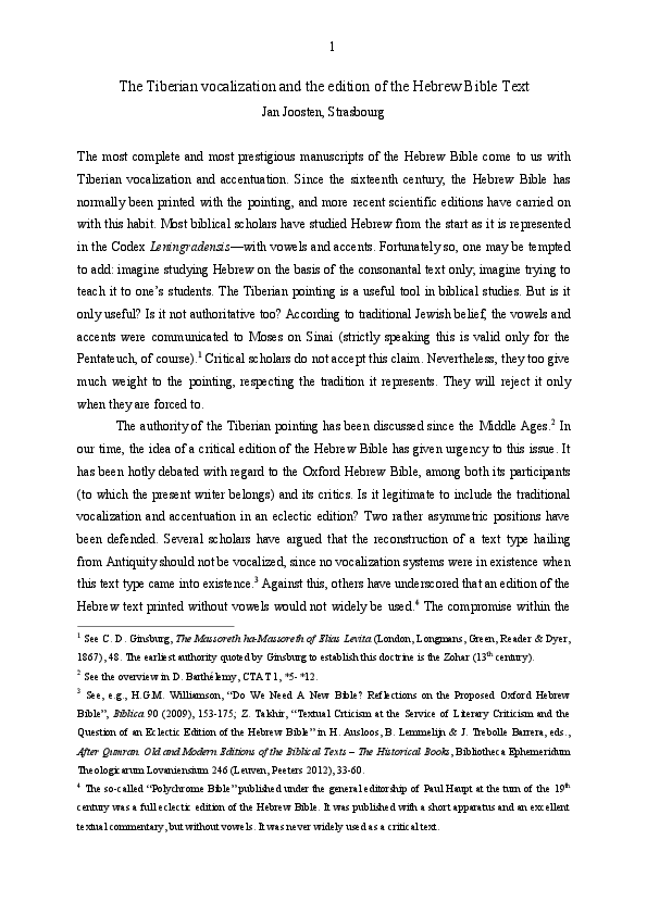 (PDF) The Tiberian vocalization and the edition of the Hebrew Bible Text