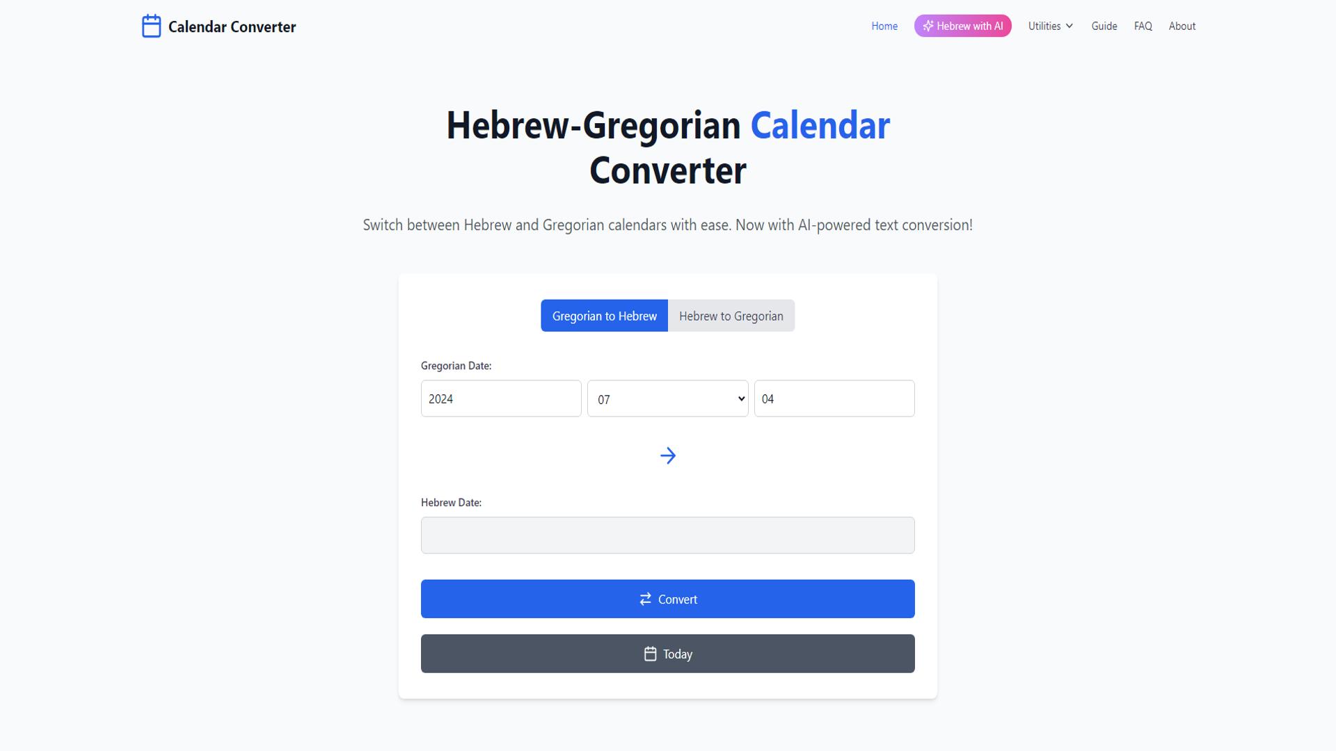 Hebrew with AI Calendar Converter Date Conversion Tool