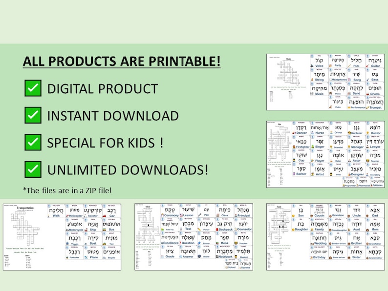 4 Games and 1 Crossword Puzzle: Sukkot for Kids Hebrew for US