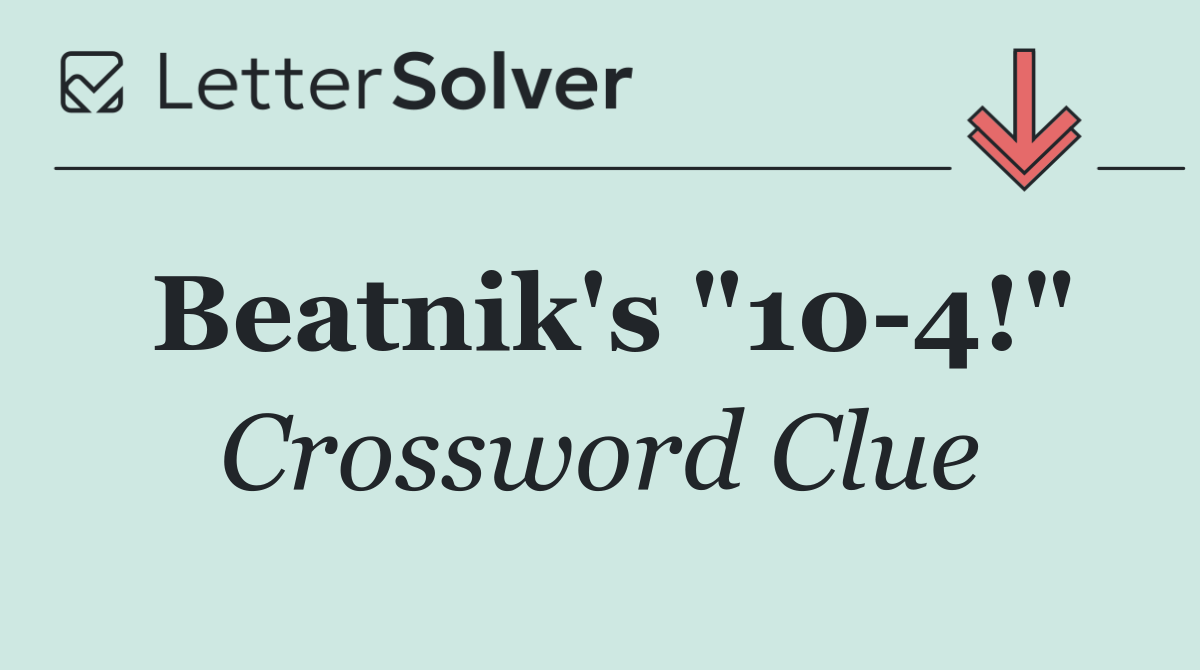 Beatnik #39 s quot 10 4 quot Crossword Clue Answers