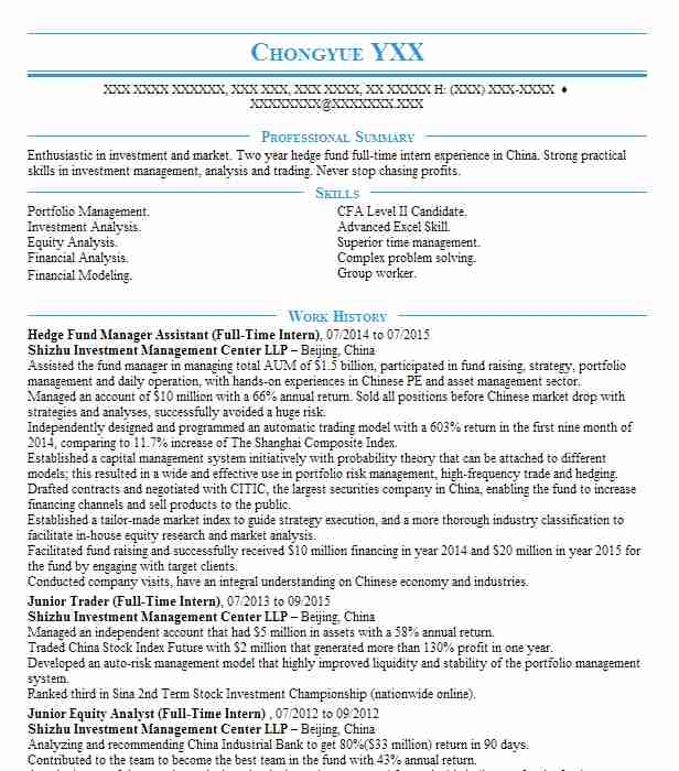 Hedge Fund Manager Resume Sample Resume Example Gallery