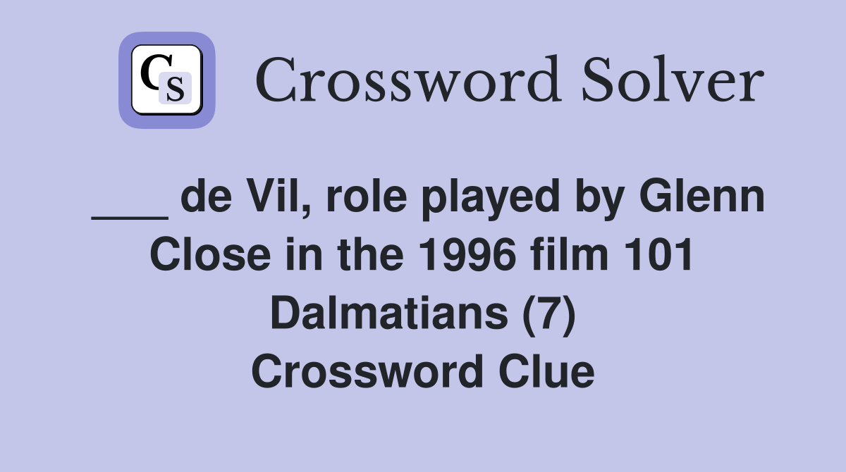 de Vil role played by Glenn Close in the 1996 film 101 Dalmatians (7