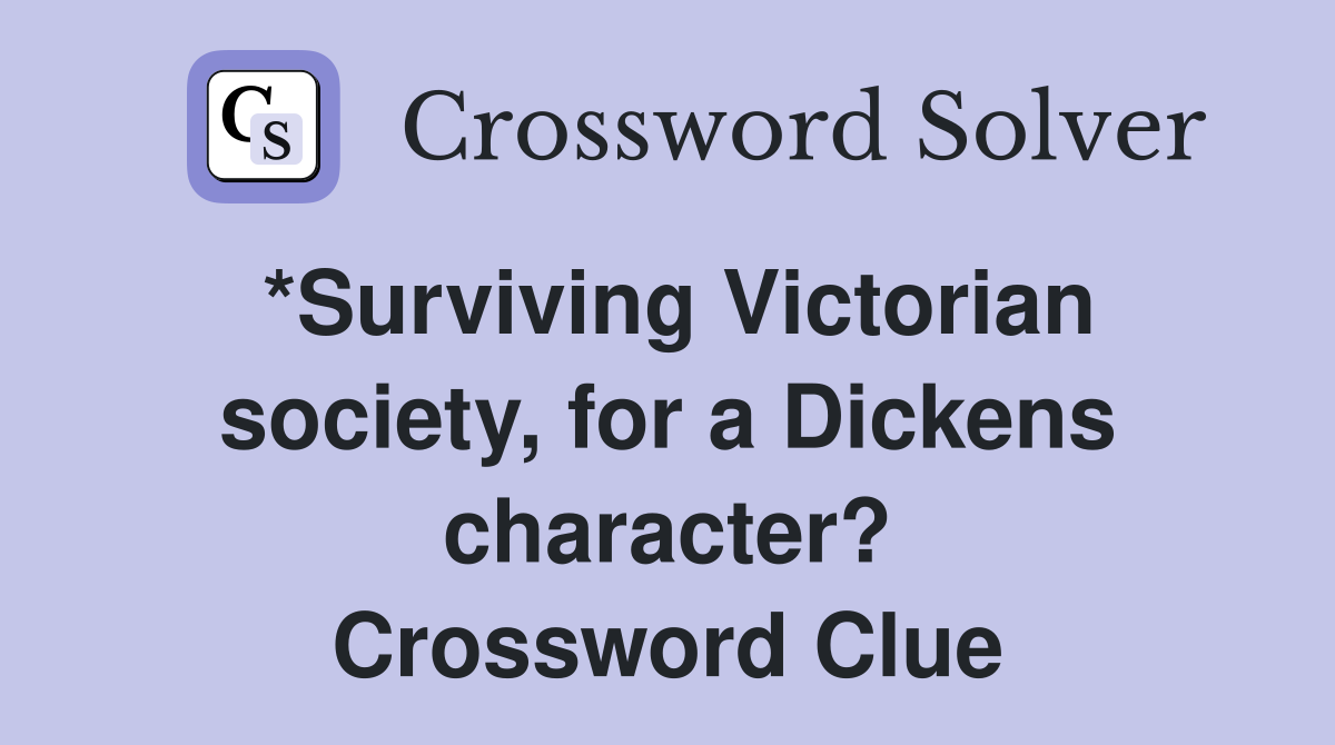 *Surviving Victorian society for a Dickens character? Crossword Clue