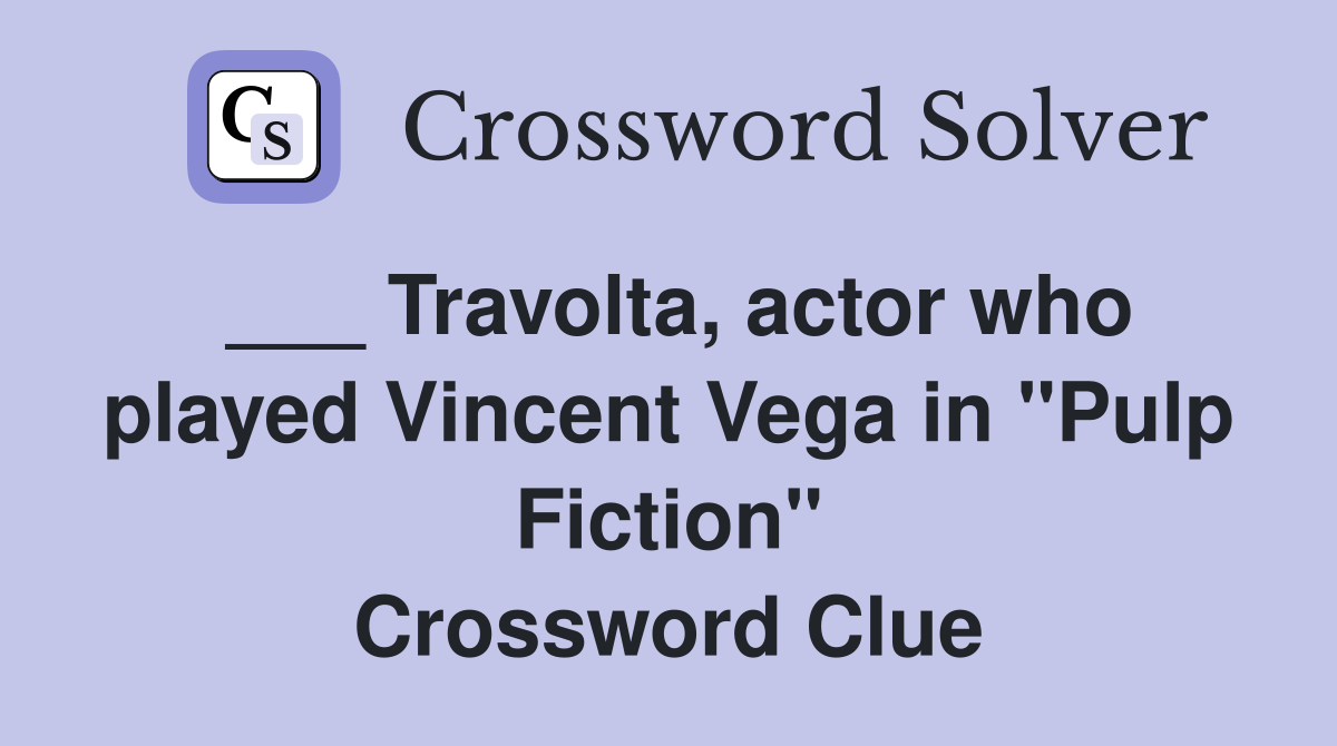 Travolta actor who played Vincent Vega in quot Pulp Fiction quot Crossword