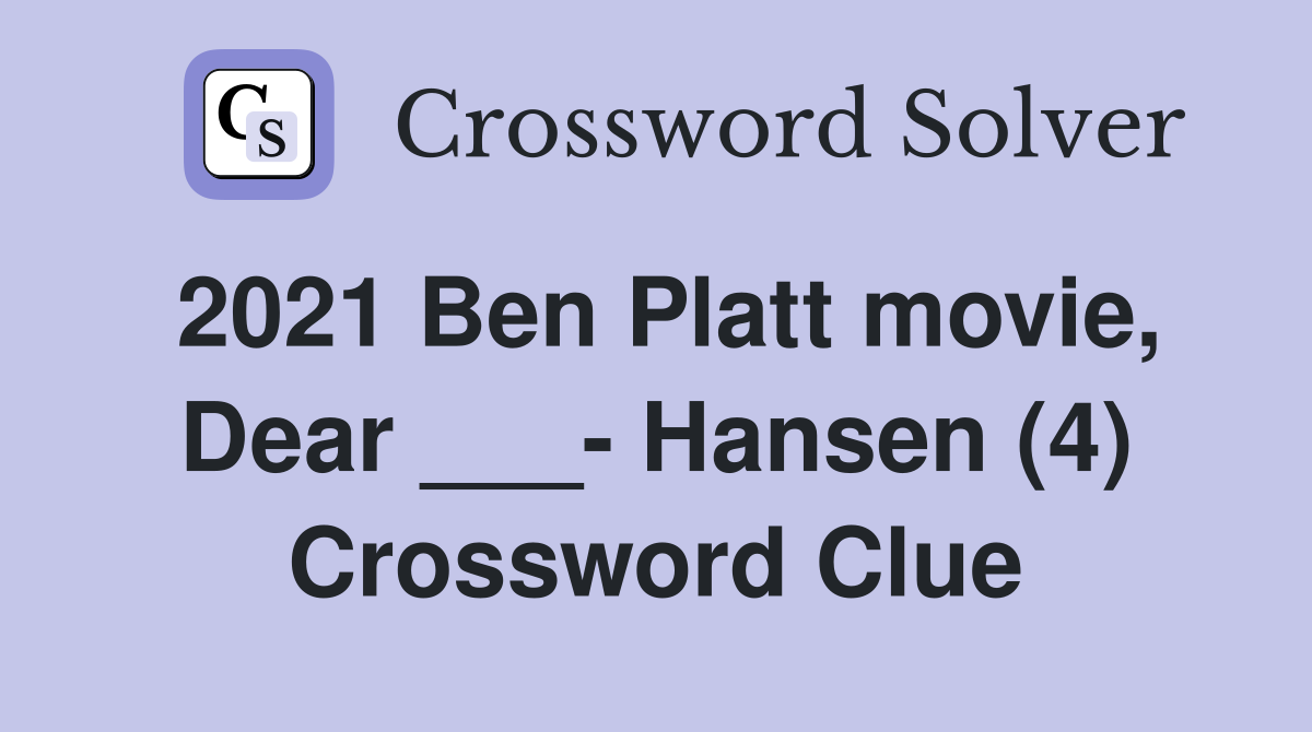 2021 Ben Platt movie Dear Hansen (4) Crossword Clue Answers