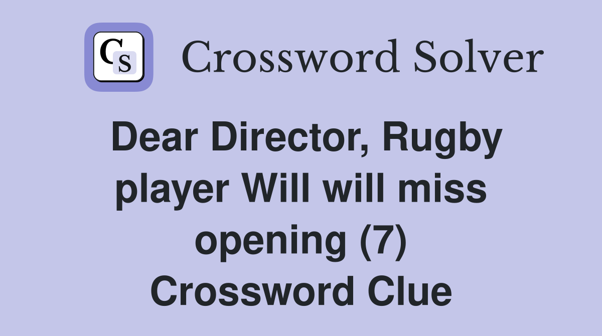 Dear Director Rugby player Will will miss opening (7) Crossword Clue