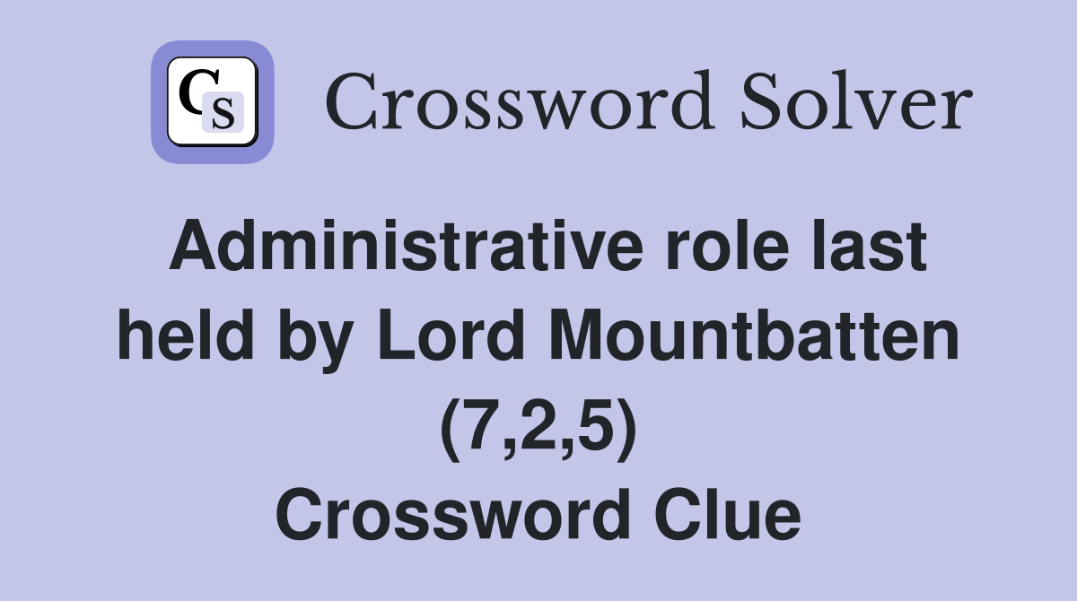 Administrative role last held by Lord Mountbatten (7 2 5) Crossword