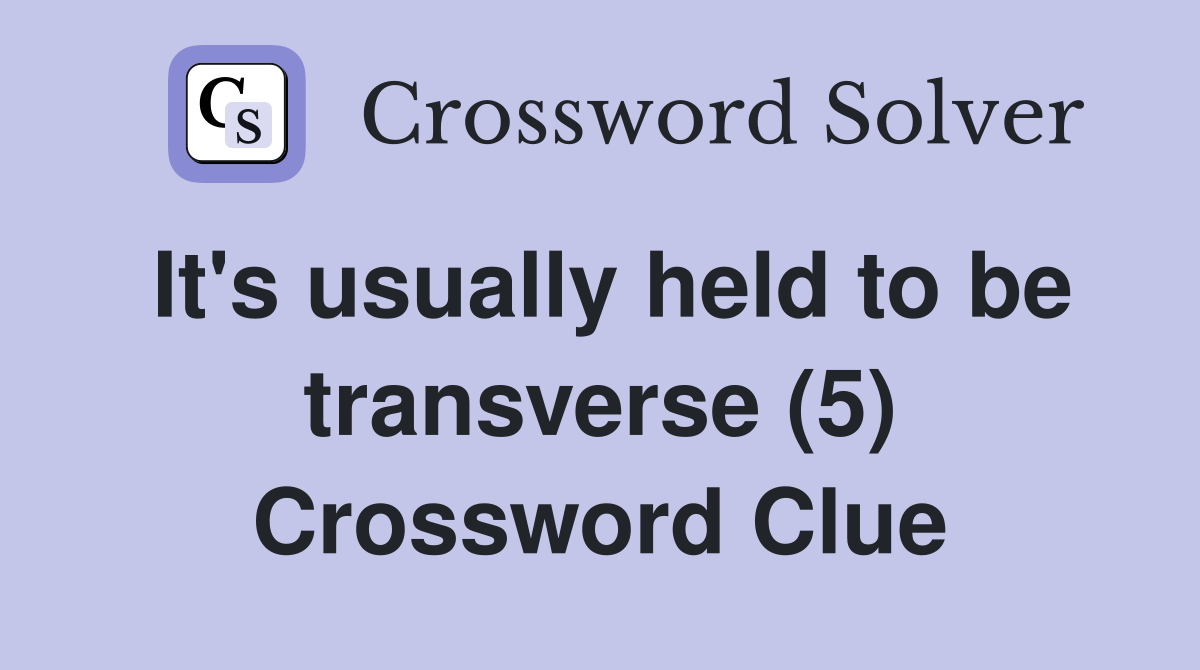 It #39 s usually held to be transverse (5) Crossword Clue Answers