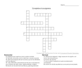 Discriminación en el aula de clase : Evidencia juego y crucigrama