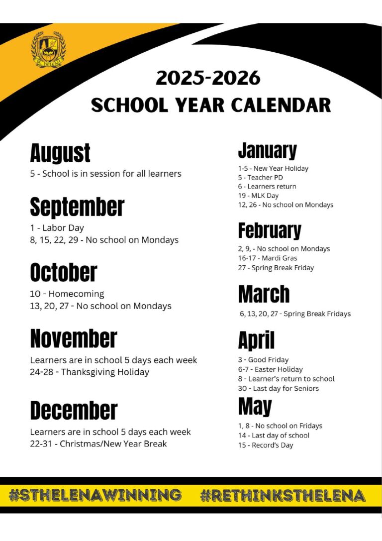 St Helena School Calendar la 25 26 Revised PDF EduCounty