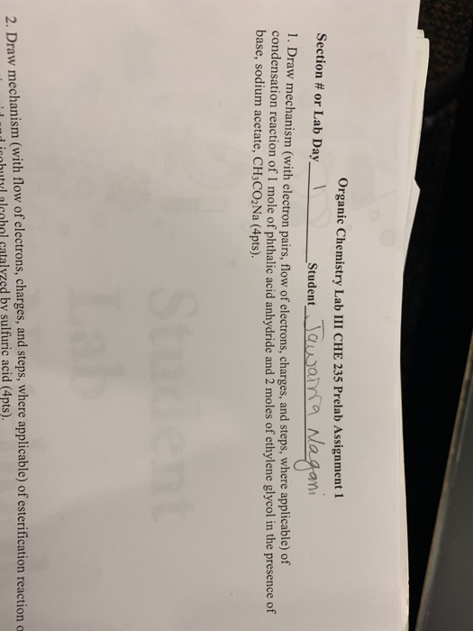 Solved Organic Chemistry Lab III CHE 235 Prelab Assignment 1 Chegg com