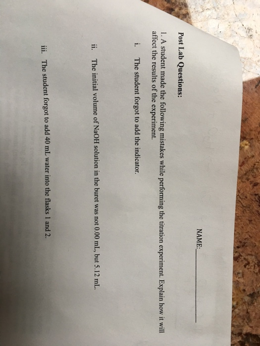 Solved NAME Post Lab Questions: 1 A student made the Chegg com