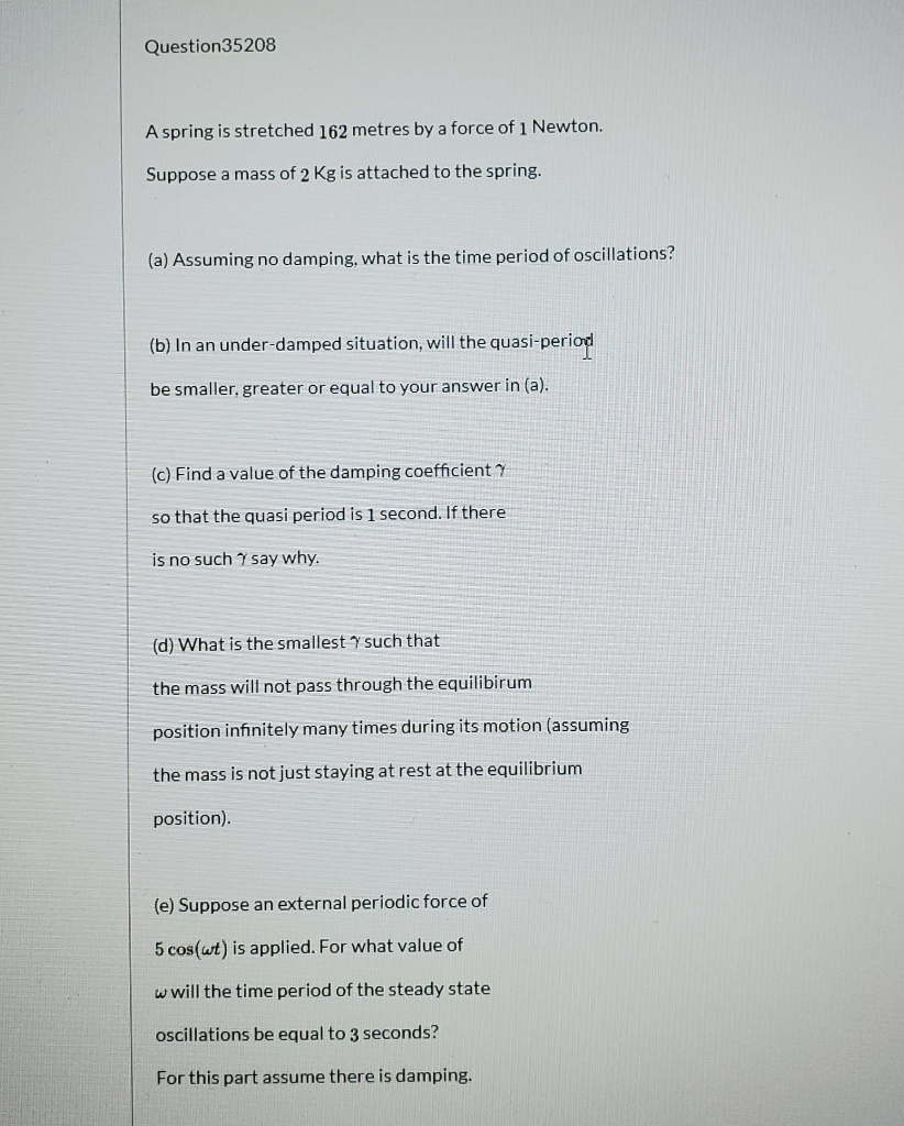 Solved Question35208 A spring is stretched 162 metres by a Chegg com