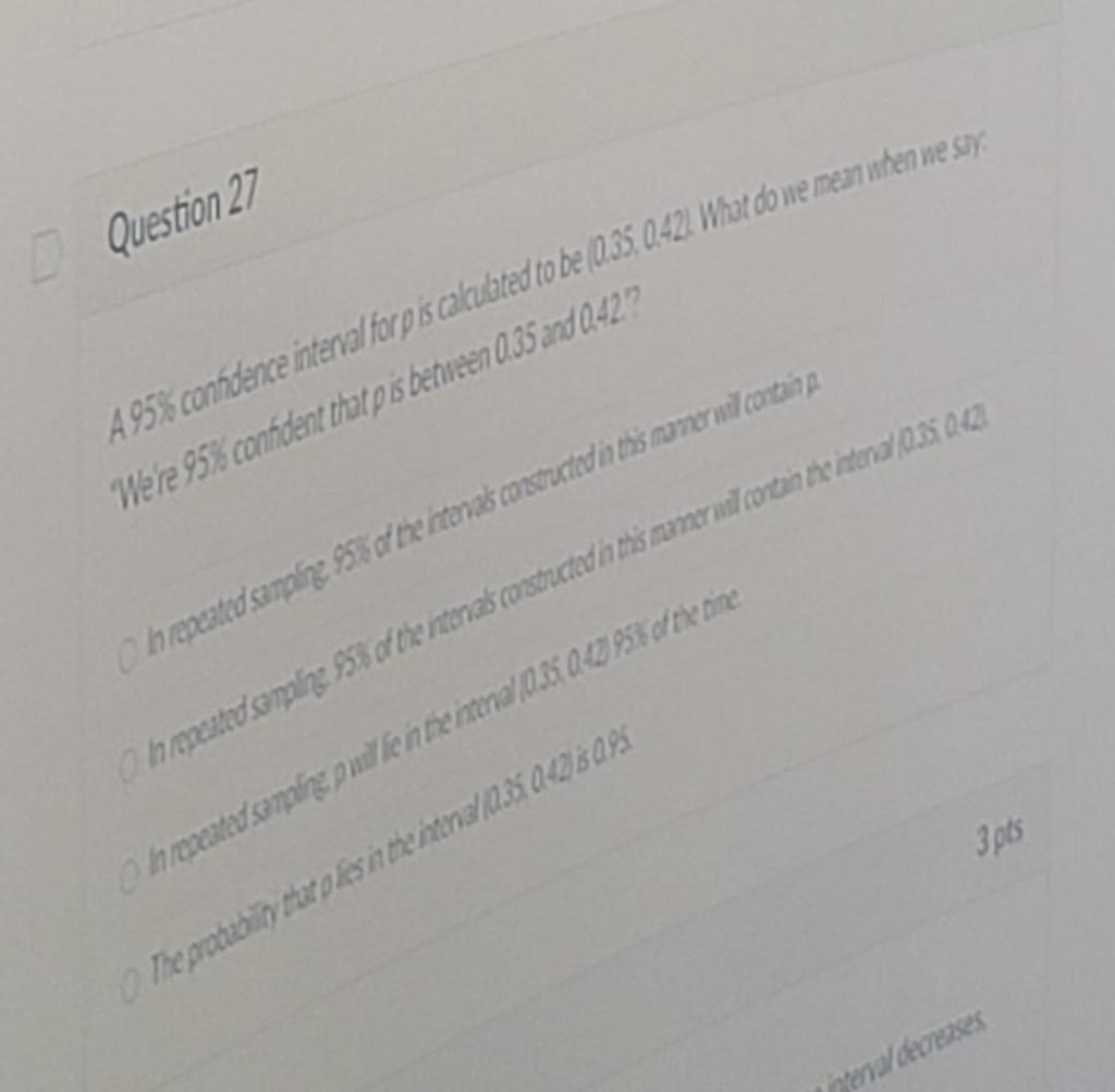 Solved Question 27 A 95% confidence interval for p is Chegg com