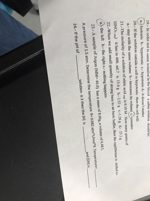 Solved 19 In order not to cause irritation in the blood a Chegg com