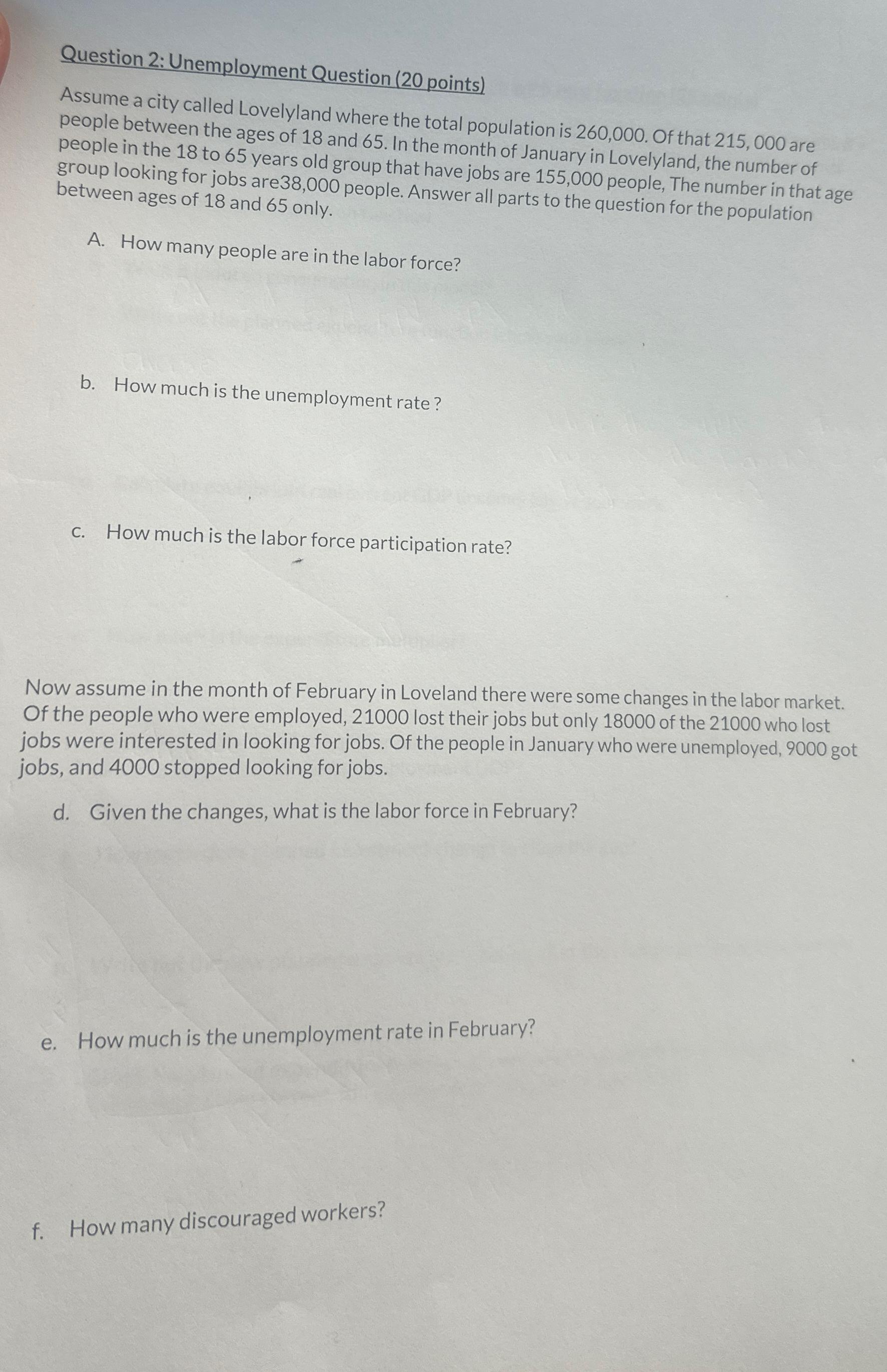 Solved Question 2: Unemployment Question (20 points)Assume Chegg com