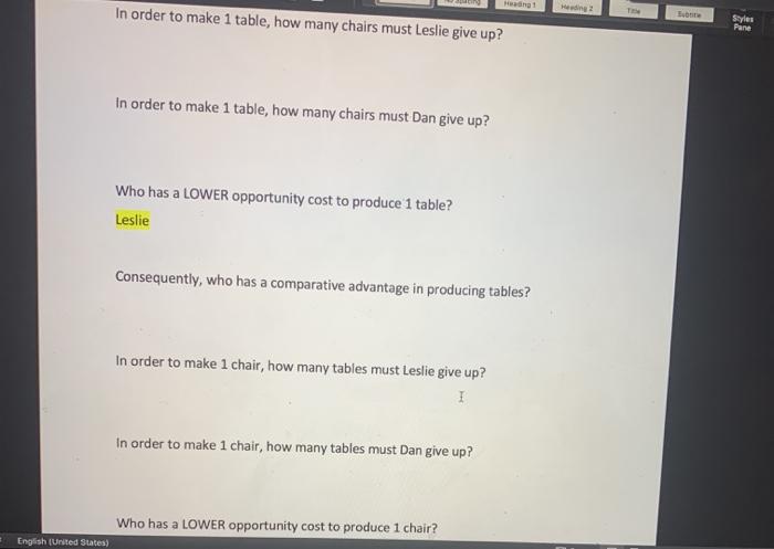 Solved Leslie and Dan can produce chairs and tables Chegg com