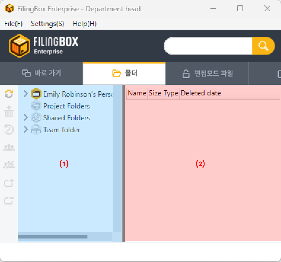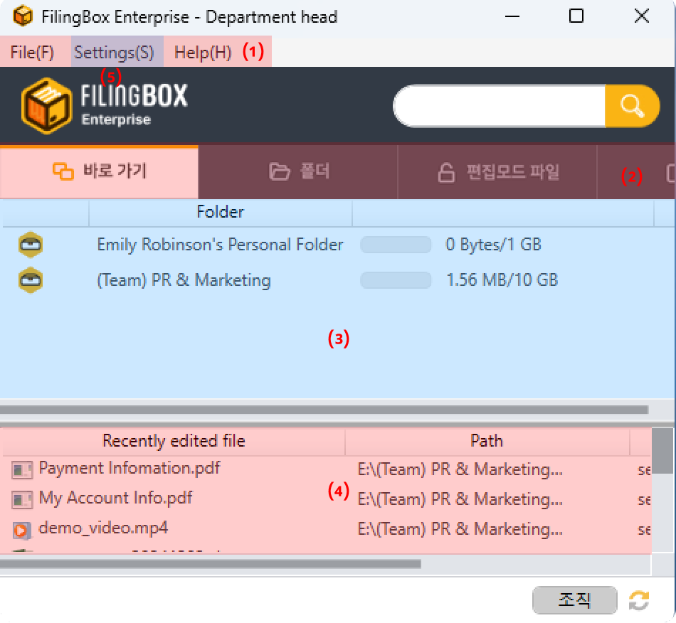 Interface layout FilingBox Help Center
