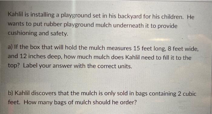 Solved Kahlil is installing a playground set in his backyard Chegg com