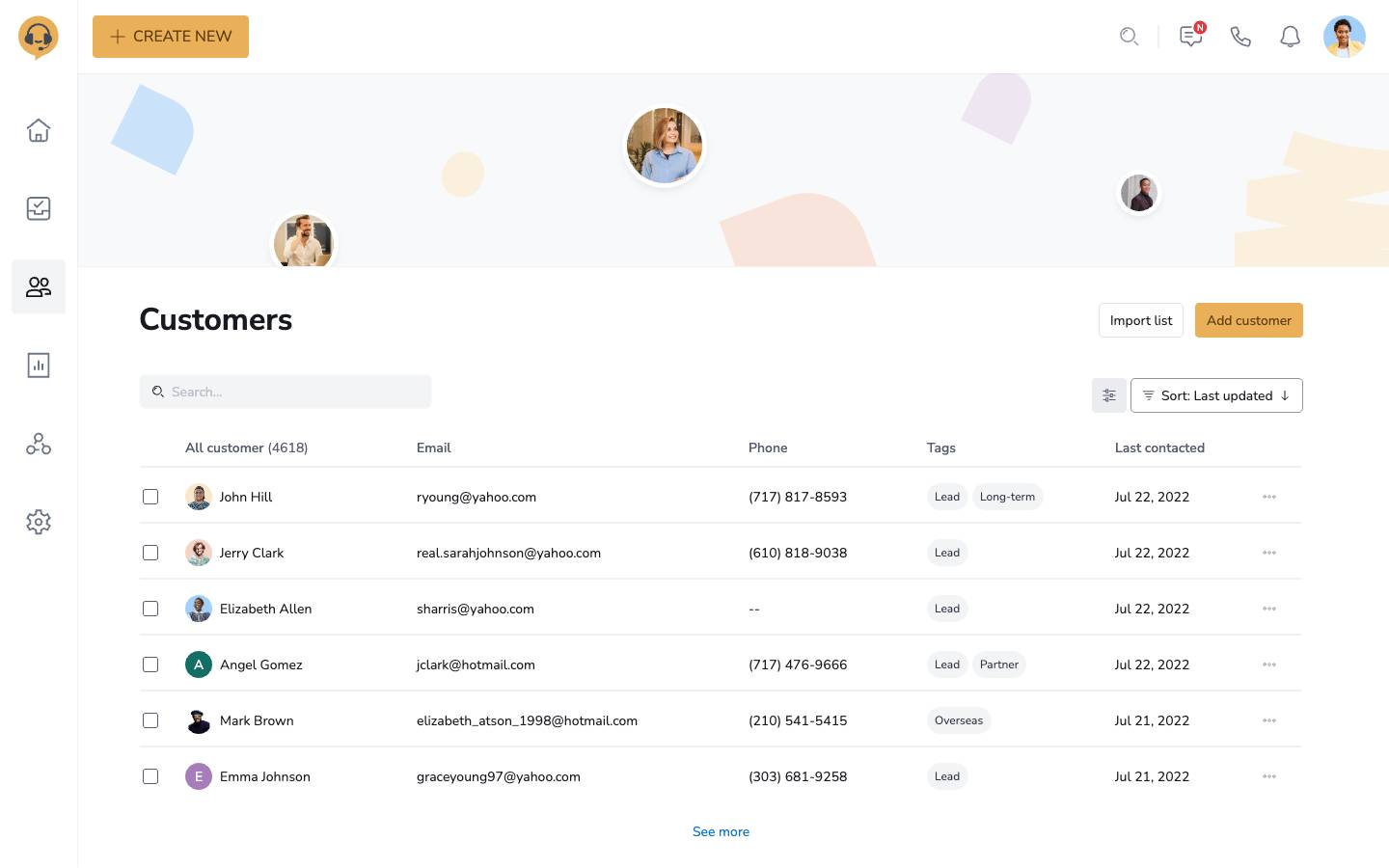 Contact us landing page Customer support website interface Mailbox UI