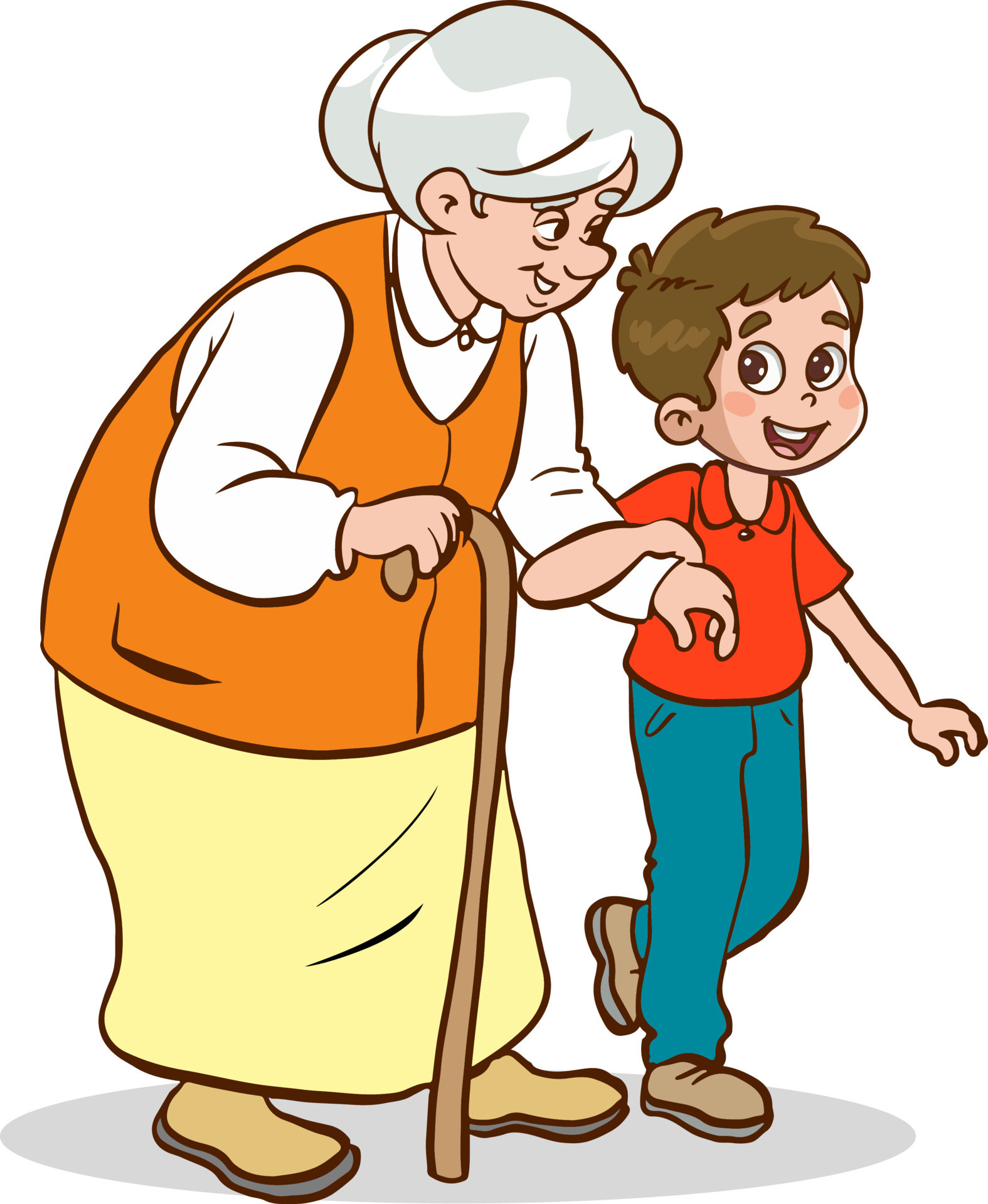 child helping old woman old woman and child walking on crosswalk