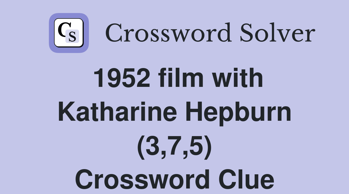 1952 film with Katharine Hepburn (3 7 5) Crossword Clue Answers