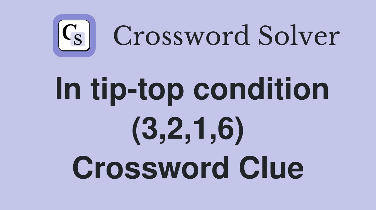 In tip top condition (3 2 1 6) Crossword Clue Answers Crossword Solver