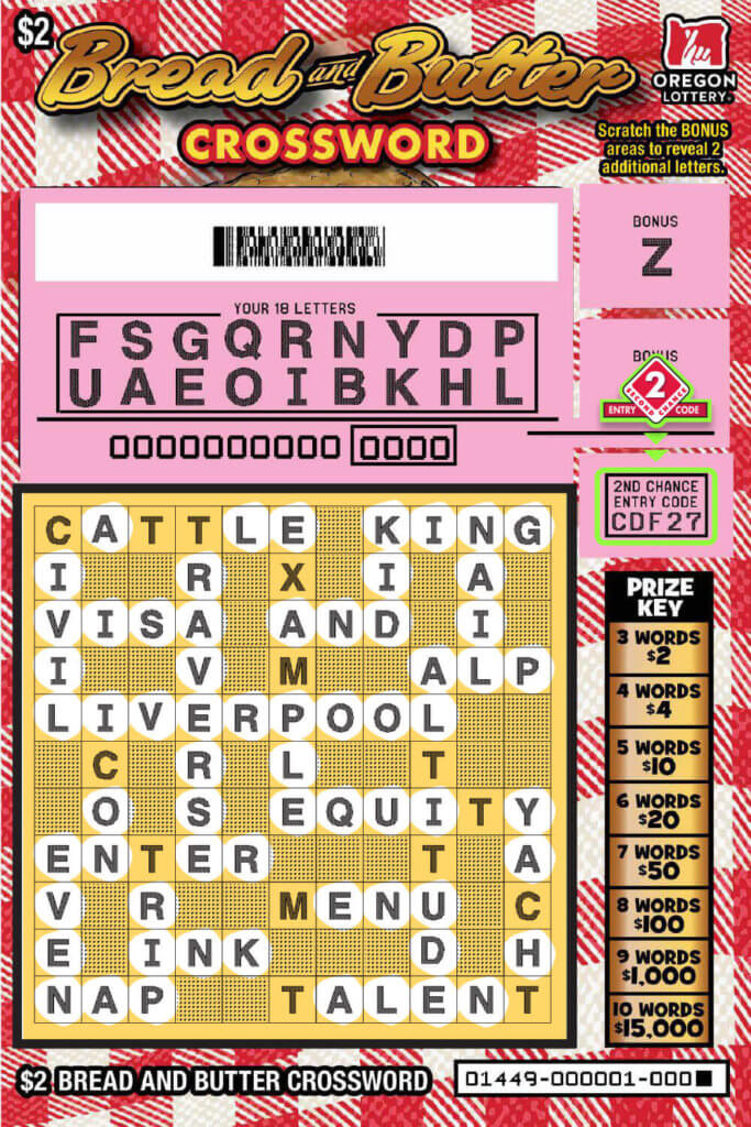 Bread and Butter Crossword Lottery Scratch Tickets Oregon Lottery