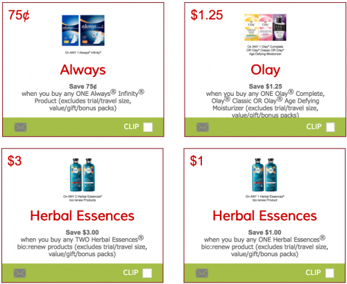 Canadian Coupons: Save $1 25 on Olay 75¢ on Always $4 00 on Herbal