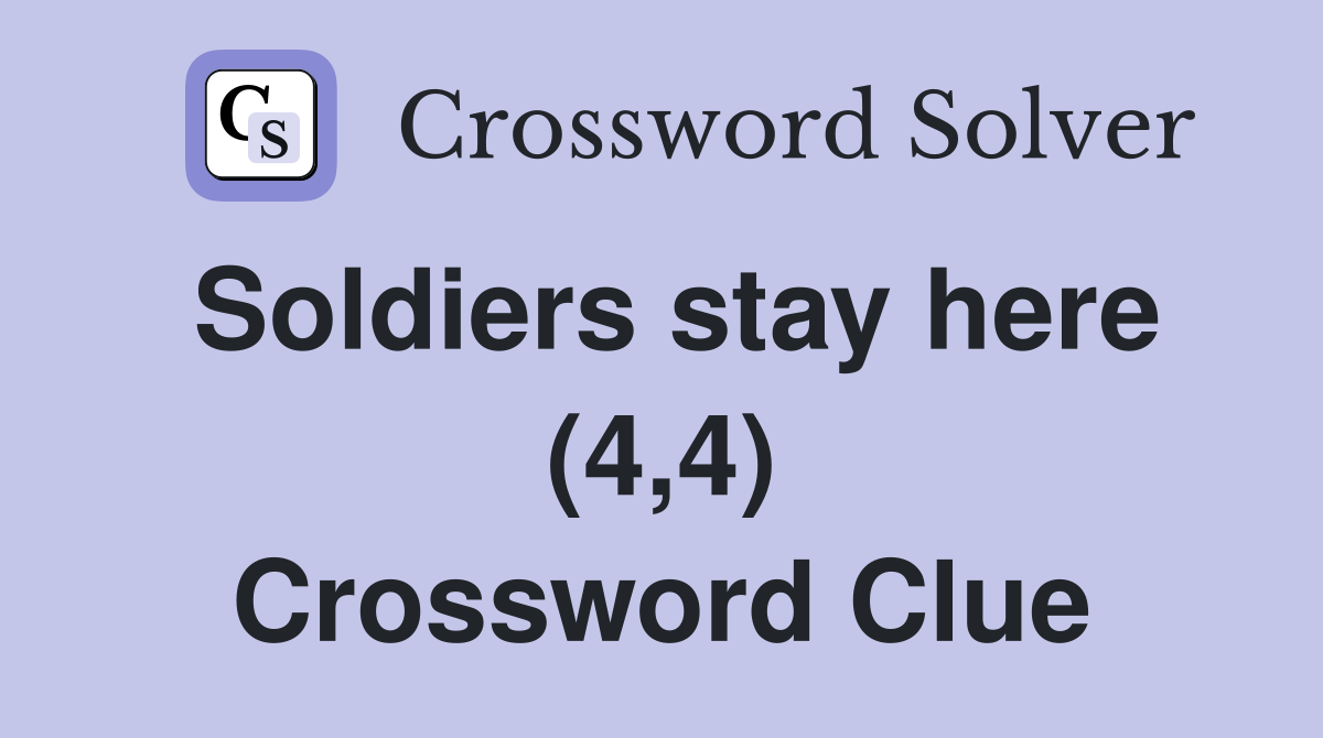 Soldiers stay here (4 4) Crossword Clue Answers Crossword Solver