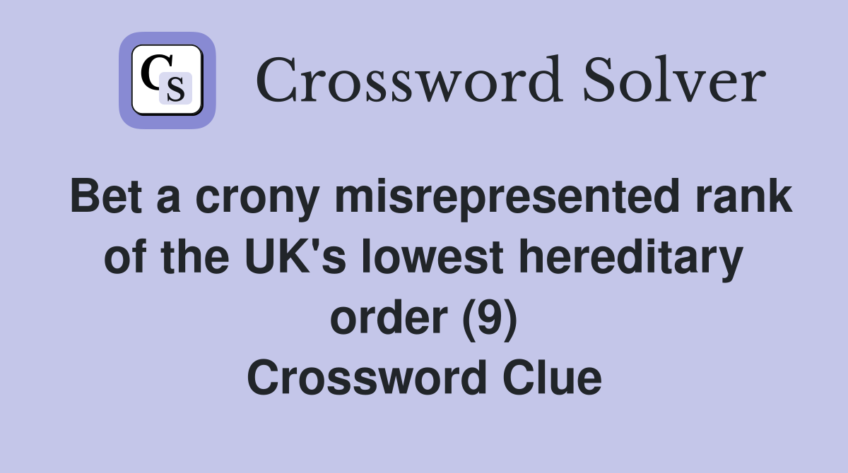 Bet a crony misrepresented rank of the UK s lowest hereditary order (9