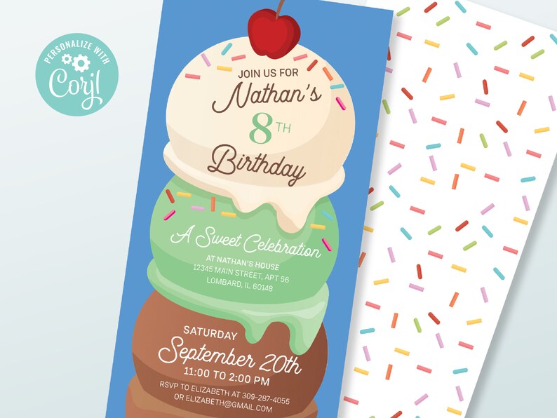 Heres The Scoop Birthday Full Party Printable We Customize Ice Cream