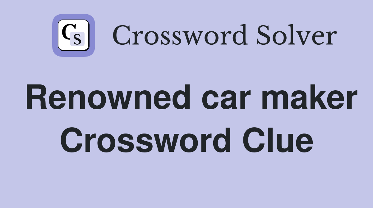Renowned car maker Crossword Clue Answers Crossword Solver