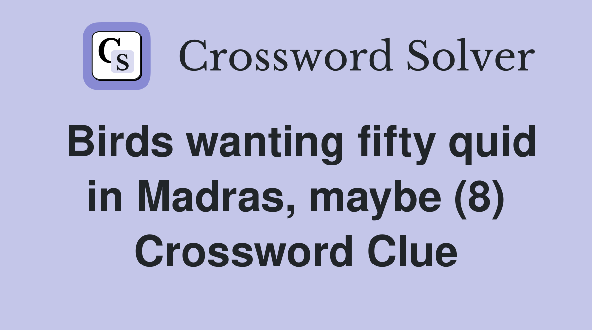 Birds wanting fifty quid in Madras maybe (8) Crossword Clue Answers