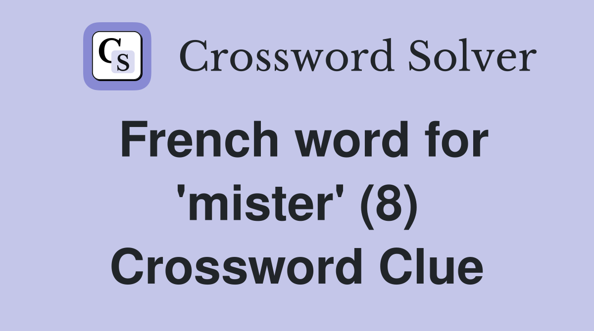 French word for mister (8) Crossword Clue Answers Crossword Solver
