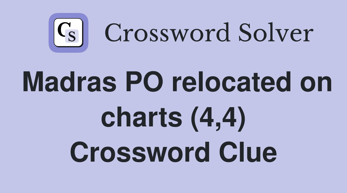Madras PO relocated on charts (4 4) Crossword Clue Answers