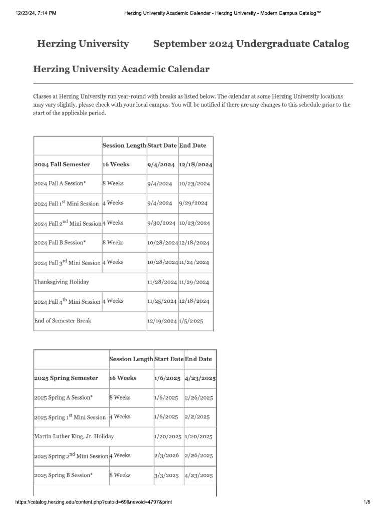 Academic Calendar Herzing University Modern Campus Catalog™